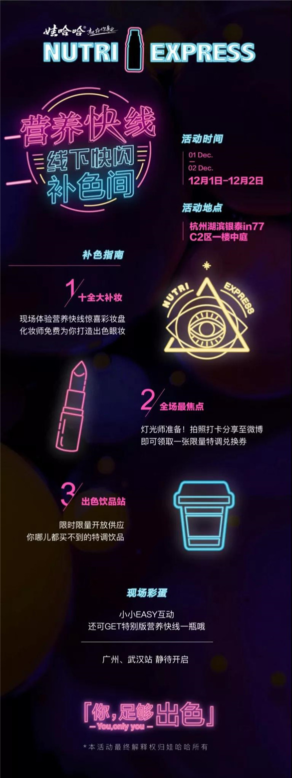营养快线除了在线上“色诱”你,在杭州也做了一个线下补色间的快闪活动,12月1日-12月2日期间,到现场的小伙伴可以直接试用本次推出的两款营养彩妆盘,更是有专业的化妆师为你免费定制最适合你的眼妆,坐等去打卡的小伙伴发来现场图,让云旅君羡慕嫉妒恨一下!