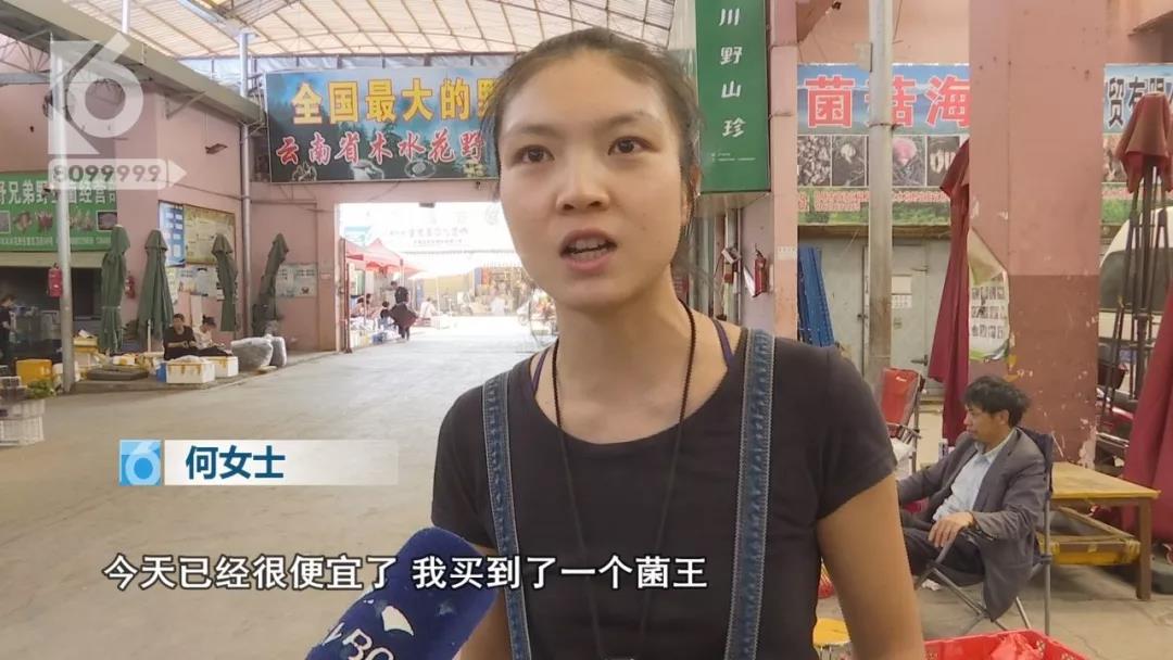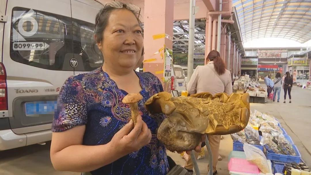 何女士:“今天已经很便宜了,我买到了一个‘菌王’,以前这个时候都不会有这么大的,可能气候啊,比如说今年气候比较温和,然后天气比较暖,然后雨水也还是挺多的,前两天就开始下雨了,所以菌子长得挺好的。”