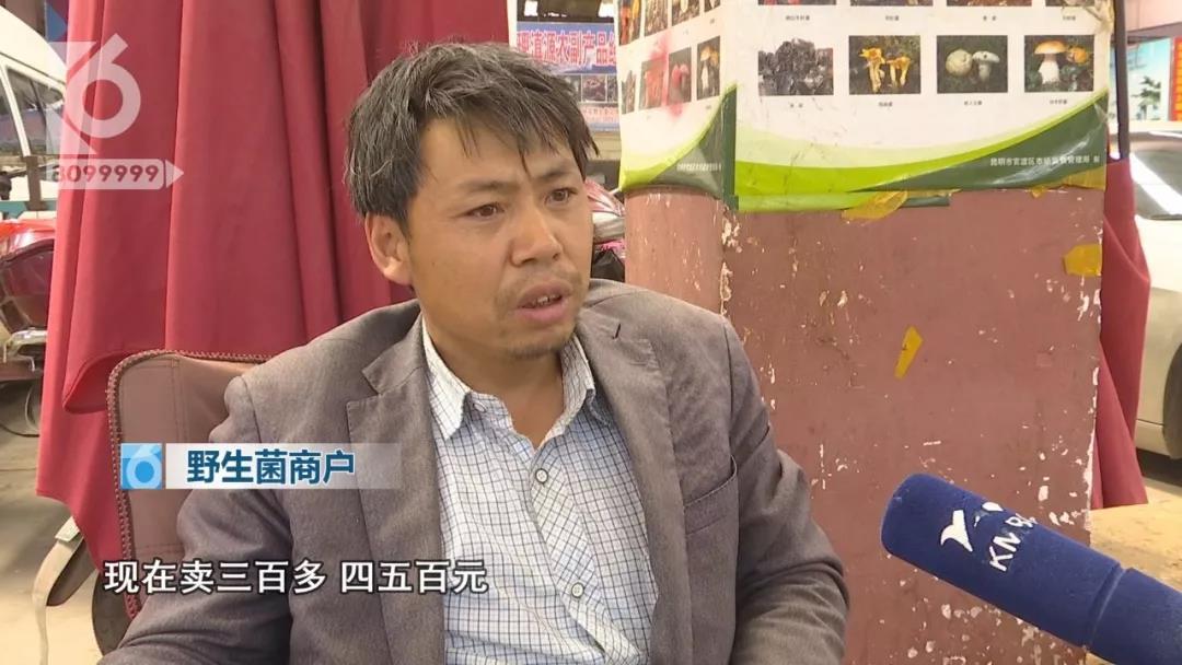 野生菌商户:“这两天就是牛肝菌、见手青,主要是见手青,之前卖800元、900元,现在卖300元到500多元。”