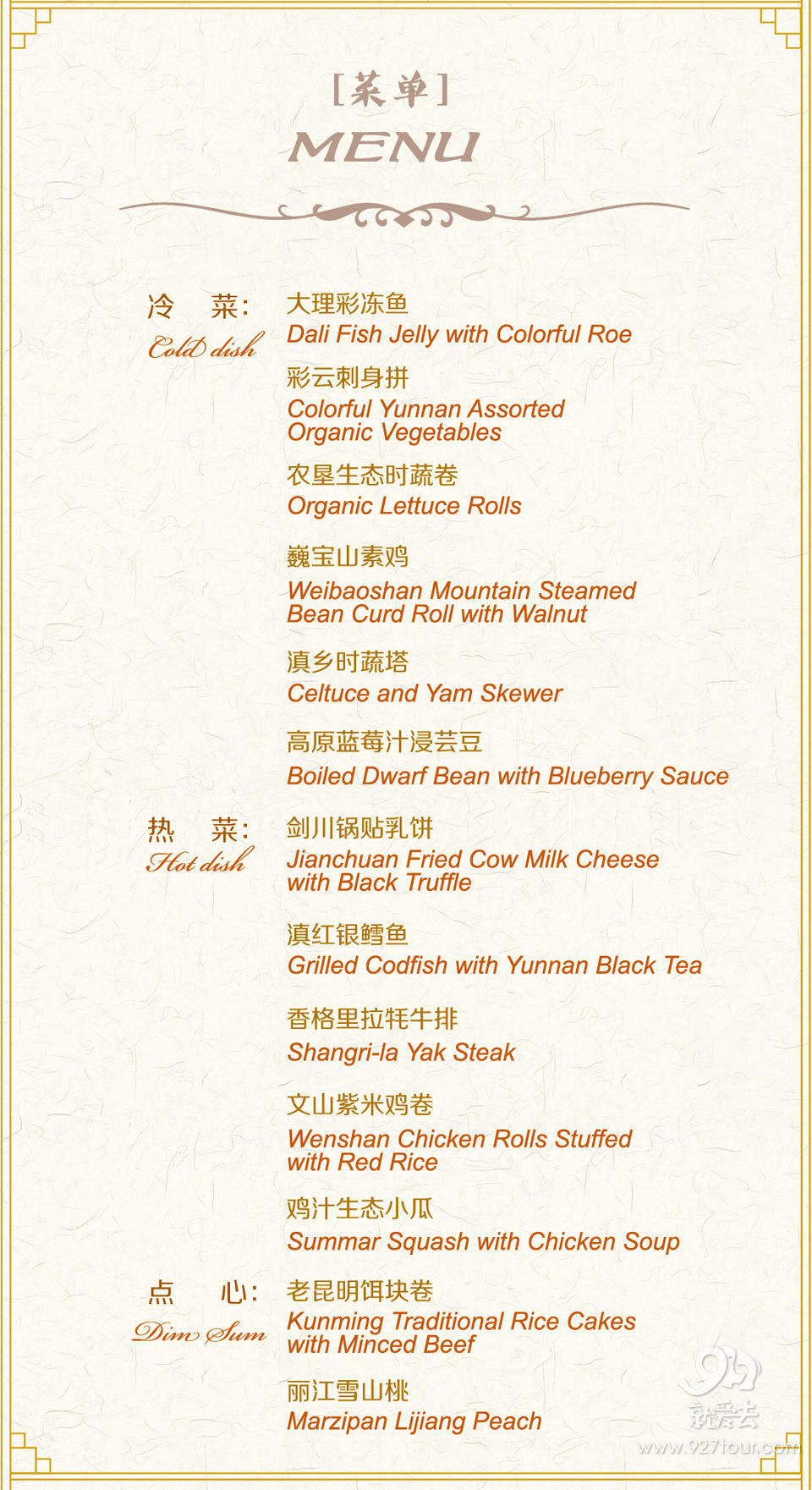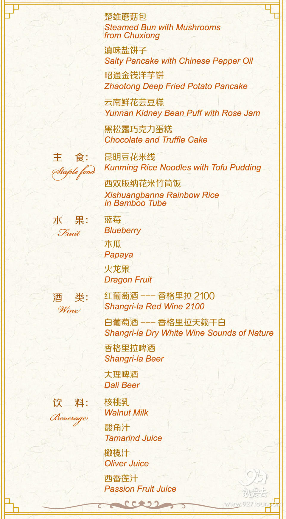 外交部云南全球推介会后,中外来宾将能品尝到最地道的云南味道。那么,冷餐会中有哪些地道的云南味道呢?记者从云南省接待办获悉,此次冷餐会的菜单可谓丰盛。冷菜、热菜、点心、主食就有20个之多。除此之外,还有水果,包括云南最出名的水果蓝莓、木瓜、火龙果,酒类则有产自香格里拉的红、白葡萄酒,饮料更是颇具云南味道,有核桃乳、酸角汁、西番莲汁等。