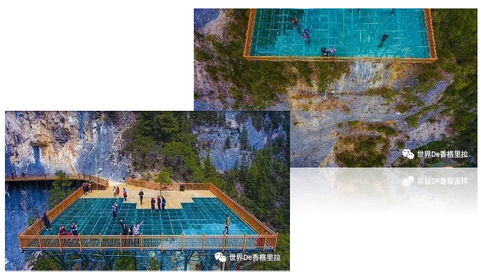 既有如此高耸的峡谷,刺激体验是必不可免的,去年5月,为了能给游客更多的刺激体验,巴拉格宗高空玻璃栈道正式营业。高低落差将近1000米,大有可上天揽月、也有下海捉鳖之势。倘若角度选得好,还可拍出“天空之境”的效果,一时之间成为来云南旅游必打卡的“网红景点”。