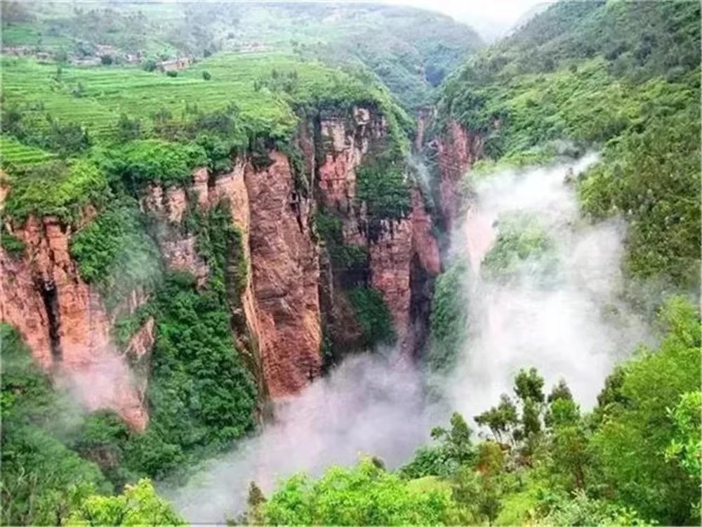 裂谷两侧顶端平地间是自然村落,虽鸡犬相闻,却难以相通,形成了雄、奇、险、 秀的崖壁奇景。