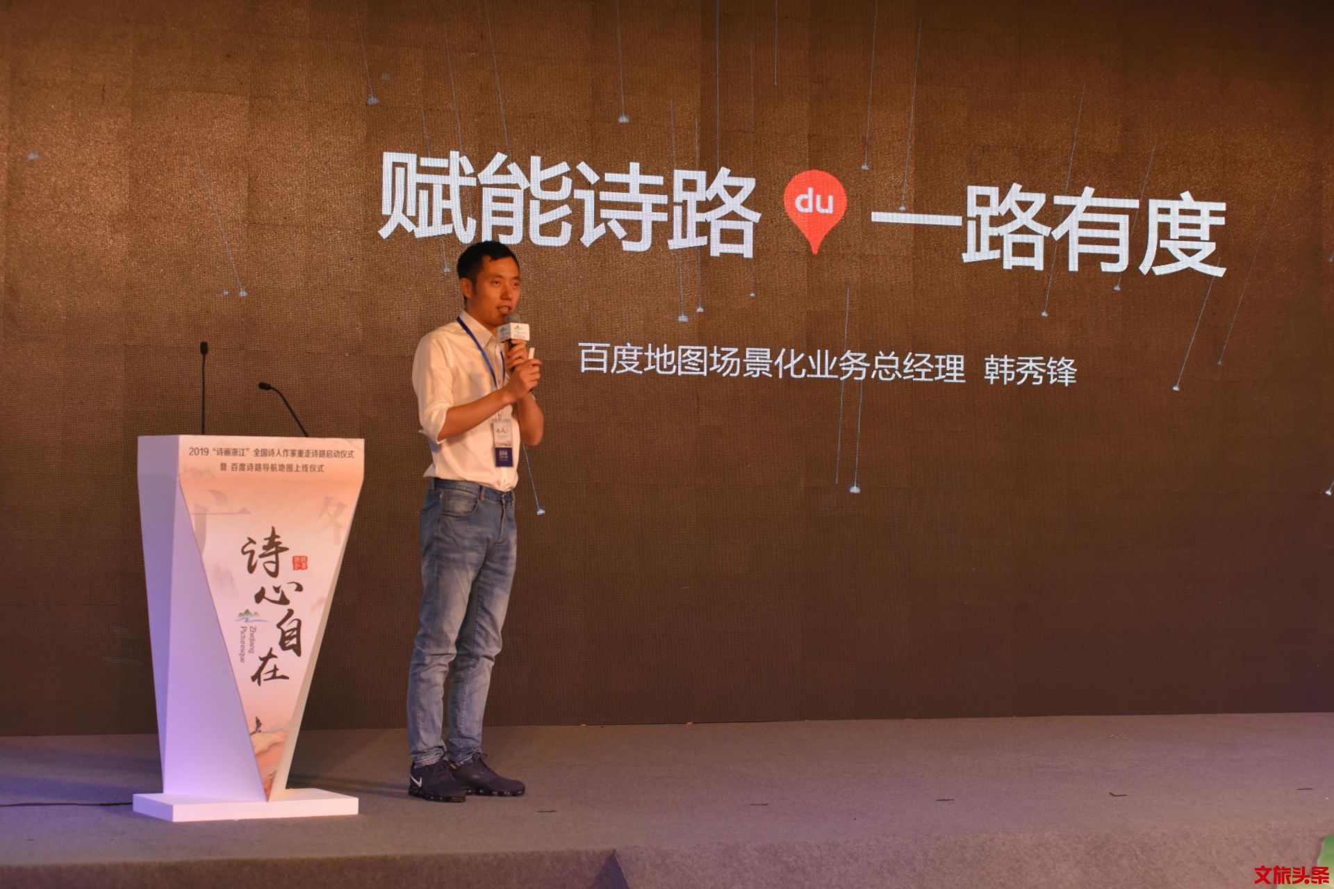 百度地图场景化业务部总经理韩秀锋在活动现场为嘉宾分享了百度地图如何赋能 “诗路文化带”。百度诗路地图覆盖浙江省全部城市,共168个诗路兴趣点,将提供景点/城市介绍、目的地推荐、导航等出游一体化服务,用特色图标表达人文要素,还有AI小度语音互动。
