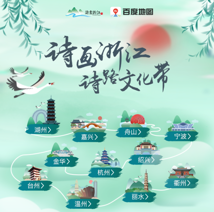 据悉,由浙报集团旅游全媒体中心和百度地图合作推出的浙江诗路电子导航地图,今天也正式上线。以后,全国的游客来到浙江,只要点击百度地图上诗路气泡标志,就可以进入专题页面,跟着导航就能畅游浙江四条诗路了。