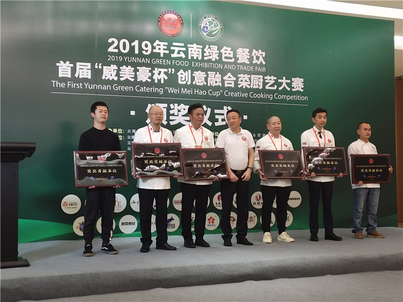 在此次大赛上,还特别颁发了"大赛突出贡献单位",分别是:昆明饭店、丽江市餐饮与美食行业协会、昆明华邑酒店、昆明厨神商贸有限公司、云南玺尊龙婚礼文化产业集团、云南春风阁餐饮服务有限公司、东方环球(昆明)国际会展运营管理有限公司、云南陆柒商贸有限公司。