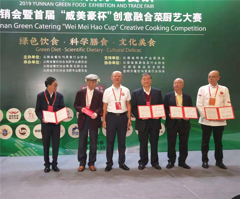 9月5、6日,云南省餐饮与美食行业协会名厨专业委员会、粤菜名厨分会、云南省烹饪协会名厨专业委员会在展销会现场联合举办了首届云南绿色餐饮"创意融合菜"厨艺大赛。大赛以"绿色、传承、创新、节约、共享"为主题,在继承传统的基础上,突出创新,坚持"讲绿色、讲健康、讲营养"的理念,融合多元化食材及烹饪技法按照国际化烹饪赛事的高规格标准举办。