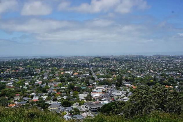 位于奥克兰市中心以南约5公里处,有一座死火山——伊甸山,形成于2-3万年以前,高196米,山顶设有瞭望台,视野开阔,是眺望市景的好地方。山顶看去,两侧的建筑面貌泾渭分明,一侧是高塔大厦,一侧是低矮楼房。毫无例外。