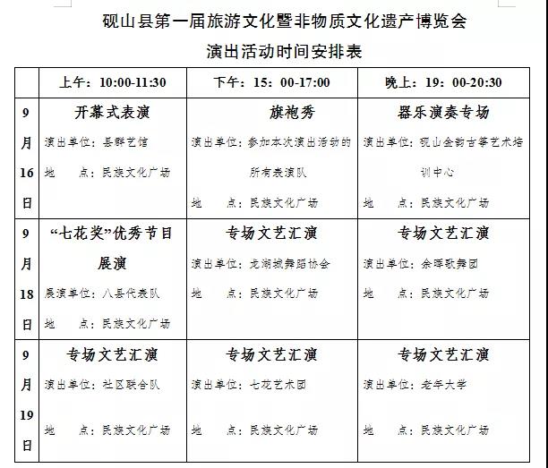 同期举办的博览会将在砚山县民族文化广场举行,围绕着砚山县“土、木、石、布”四张文化名片开展,在9月16日开幕式当天,还将举行非遗项目展演。