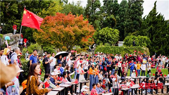 在国庆来临之际,云南省文化和旅游厅在昆明市石林风景区举办了"与祖国同行·颂歌彩云南"快闪活动,来自云南26个民族的群众及国内外游客共同参与演唱,迎接新中国成立70周年。现场游客纷纷驻足引吭高歌,上演了一场没有彩排的精彩合唱。