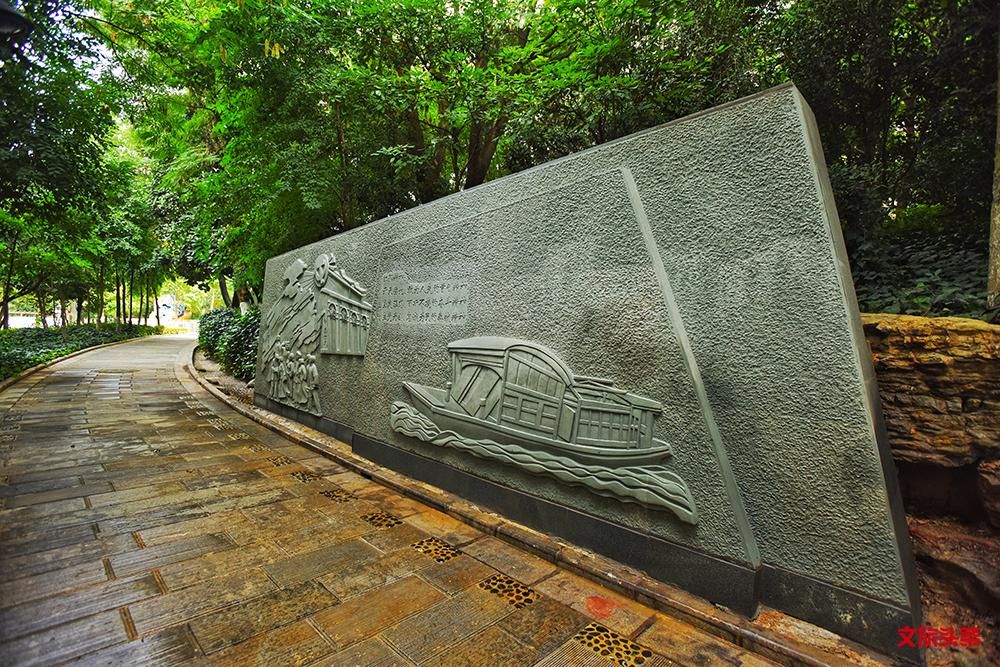 党史文化浮雕长廊围绕环山步道,以中国共产党诞生以来的重要节点事件为主线,通过开篇序言、焕然一新、逆流而上、星火燎原、奋力前行、中流砥柱、艰苦奋斗、解放全国八组浮雕墙,集中展现中国共产党从诞生到新中国成立期间的光辉历程。