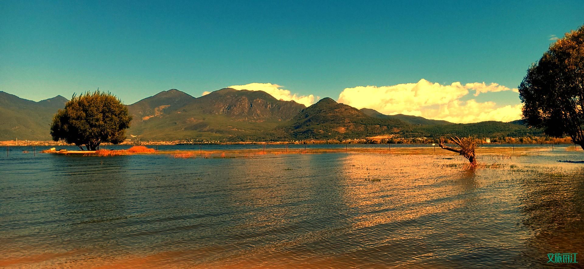 十月的拉市海,无论是草地还是边上树木,都好像镀上了一层金边,倒映在拉市海的水面上。从茶马古道上归来的游客,悠闲的骑在马背上欣赏拉市海的美景,熙熙攘攘,络绎不绝。