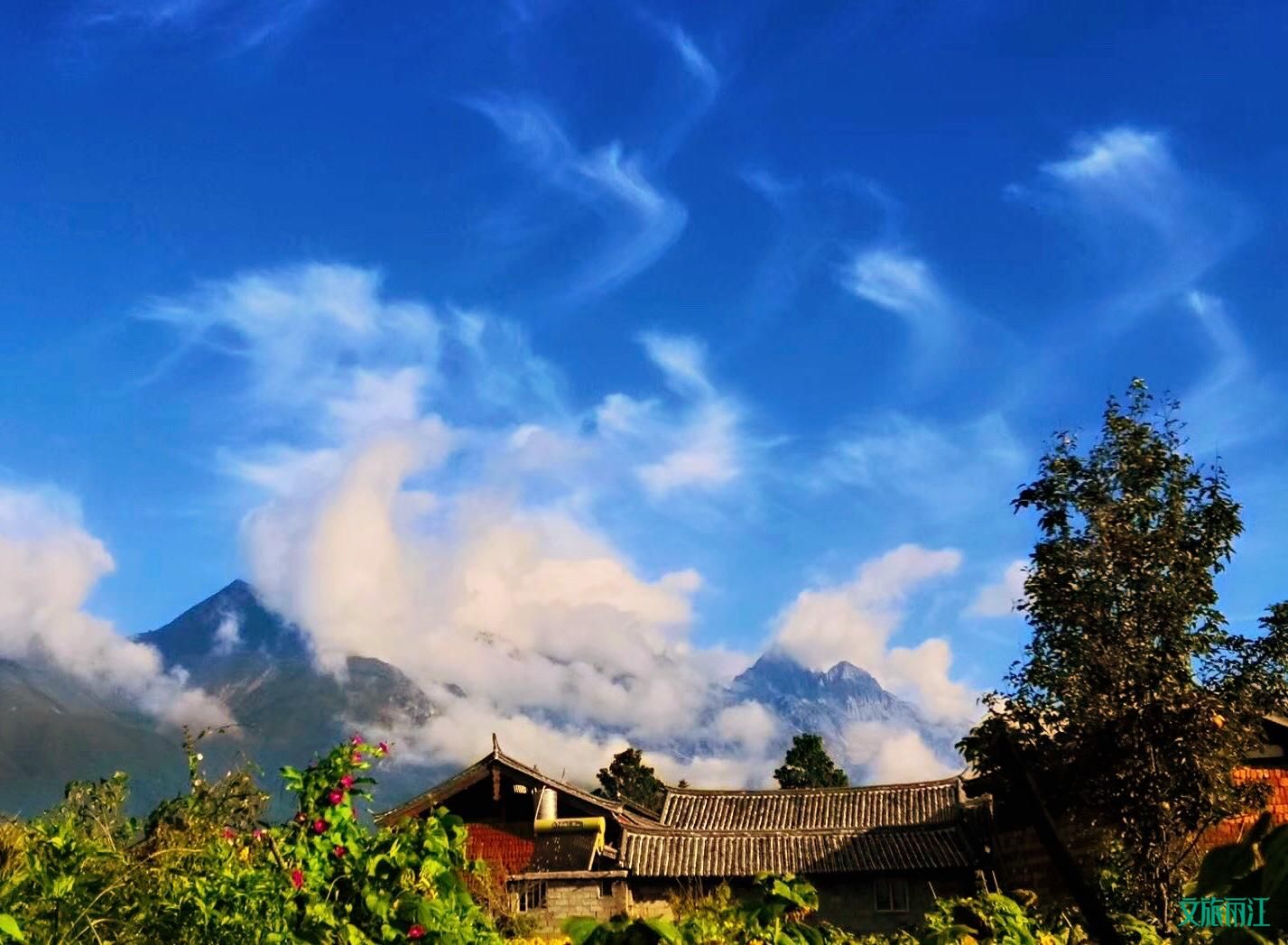 白沙古镇背后是巍峨的雪山,有了这样绚丽的背景搭配湛蓝天空,从任何角度拍摄白沙古镇都是惊艳美丽。