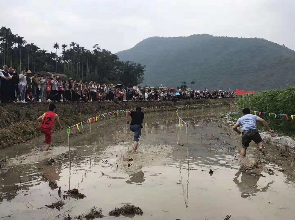 漠沙镇大沐浴花腰傣文化生态旅游村有着悠久的历史,是新平古老的花腰傣村寨之一。村里自然风光旖旎,以花腰傣民俗文化为主的乡村旅游文化优势也十分明显,2018年10月3日至4日,漠沙镇开展一系列刺绣文化活态展示、民族歌舞展演及诸如“泥地赛跑、坝田体验和浑水摸鱼”等丰富多样的活动,提升了游客旅游体验感。