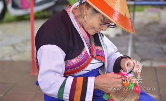 新平县漠沙镇大沐浴花腰傣文化生态旅游村,至今保存着特色鲜明的花腰傣文化,村中,传统民俗工艺随处可见,花腰傣纺线、织布、刺绣在一代代匠人守护中得到了最好程度的保护和传承。国庆期间,诸如头饰、背包、床单、小背萝等一系列民俗产品纷纷成为游客喜爱的伴手礼。