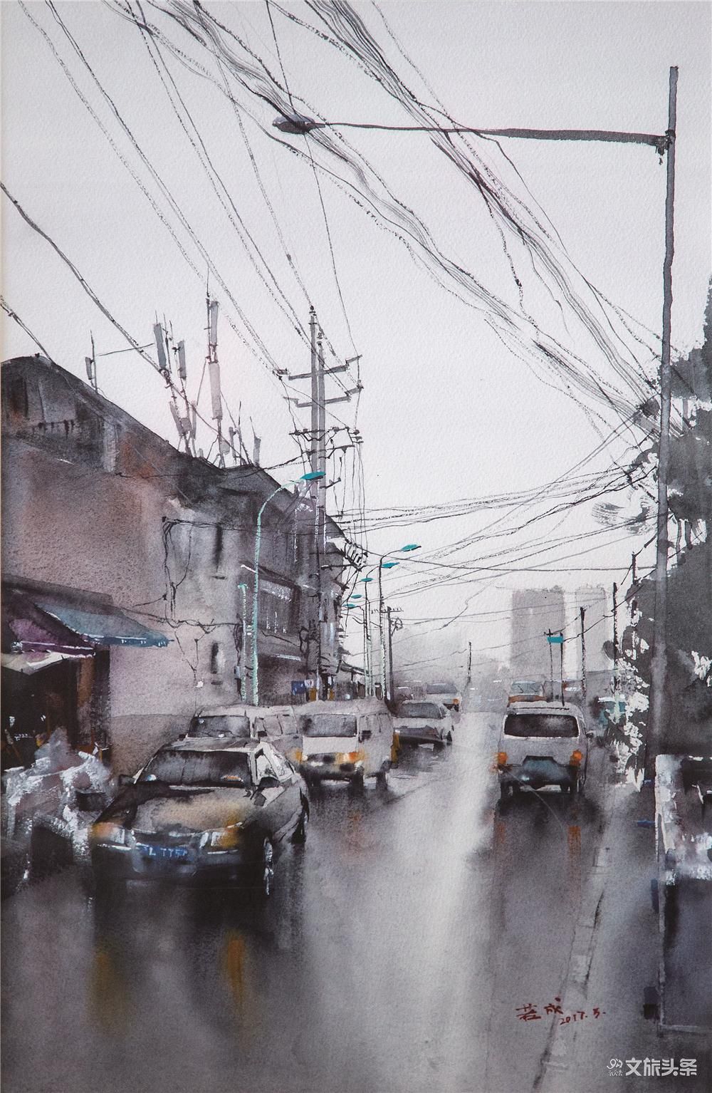 (《老城街景二》52×34cm 纸本水彩)