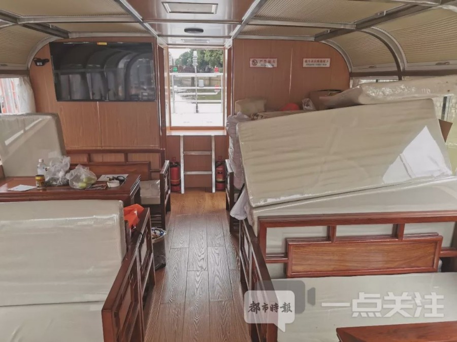 船舱内还配备了电视、洗手间。