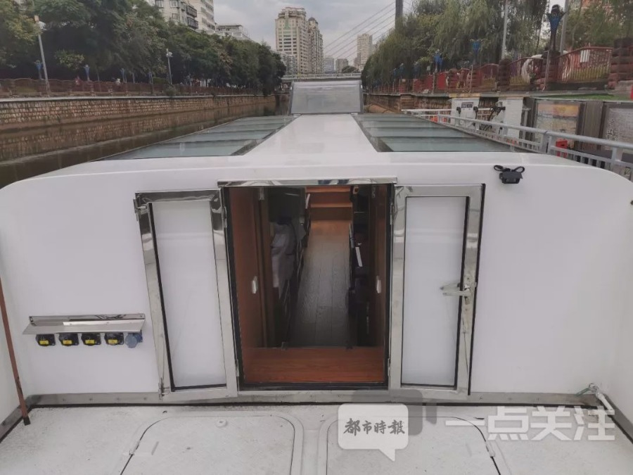 早在10月8日,都市时报记者就在盘龙江北河埂段看到游船的真容了。