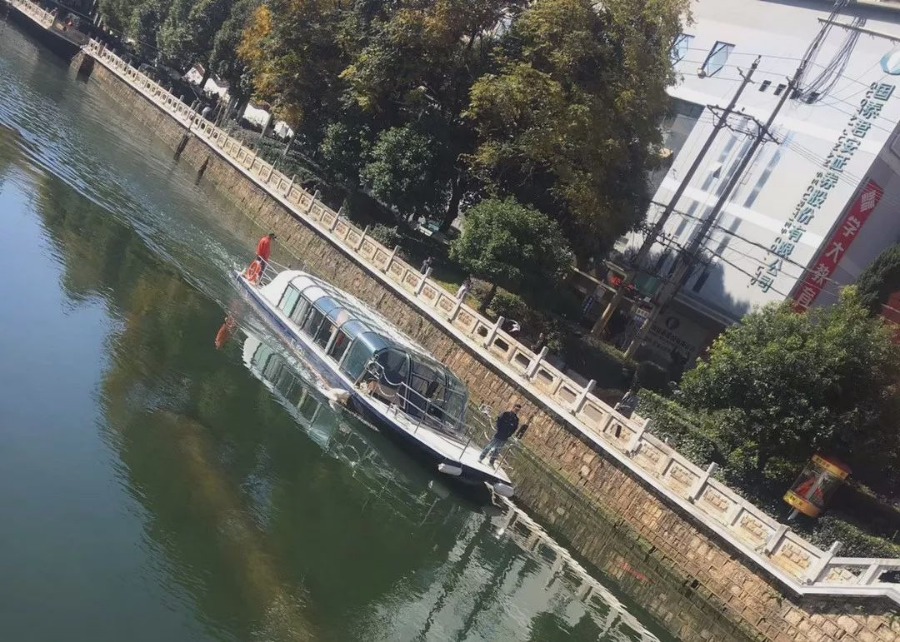 据了解,一艘船预计承载16名乘客,票价暂定50元一人。从桃源码头启航,绕米轨铁路桥至南太桥,全程来回5公里,预计一小时一趟,每天发船趟次根据具体情况而定。目前,投入试运行的船只只用于观光。
