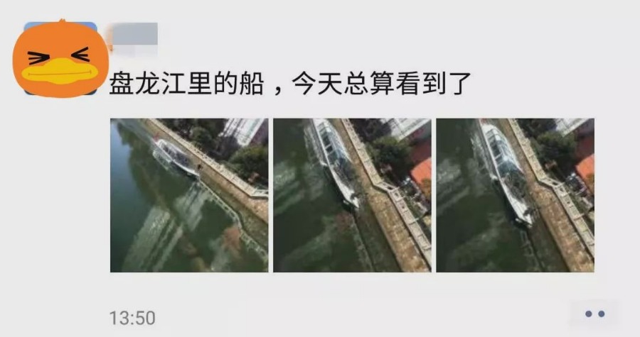 12月25日,有网友发朋友圈称,终于见到盘龙江的船了。