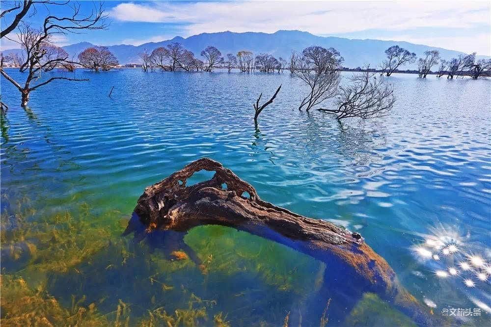 草海水域面积广阔,河渠纵横交错,湖水蔚蓝,岸边野花烂漫,简直是鸟儿的天堂,蓝天白云倒映在水中美不胜收,是独有的高原水乡风光。