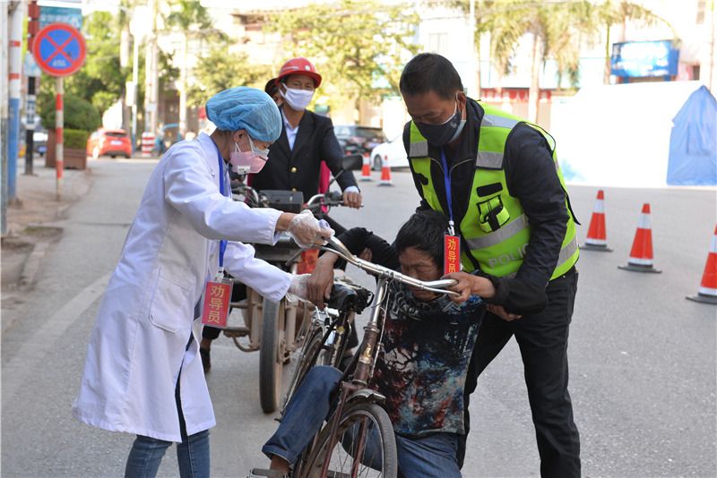 “大哥,请您佩戴口罩。”执勤的工作人员拦下了正摇摇晃晃骑着自行车向监测点冲来的一名醉酒男子,并为他测量体温,要求他佩戴口罩时,该男子顺势瘫倒,大伙儿你扶车,我扶人,毫发无损地将他抬到监测点的凳子上坐好,待他酒醒后才让他离开。也就在这个监测点,2月1日下午,一辆车不听从工作人员指挥停车,车轮压过了元马镇医院护士张蕊的脚趾,幸好没有伤到骨头。第二天,监测点上又出现了张蕊手拿体温计忙碌着的身影。