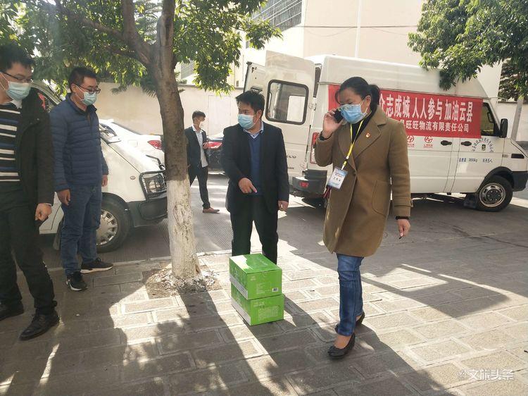 2月5日,云县旺旺物流有限公司总经理李兴伟和公司成员带着矿泉水、饮料等到滞留人员“关爱点”,看望疫情防控一线人员,云县文化和旅游局主要领导及工作人员接收了捐赠物品。本次捐赠的物品有苏打水100箱,茶饮料20件,方便面40箱,牛奶40箱,还有其它物品若干。