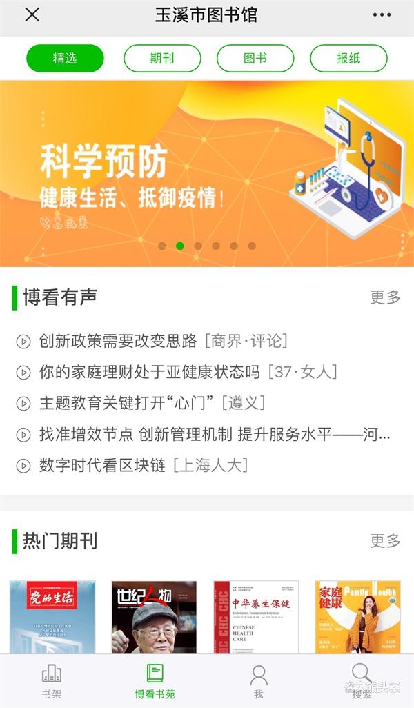 使用方式:进入玉溪市图书馆微信公众号→数字服务→博看期刊