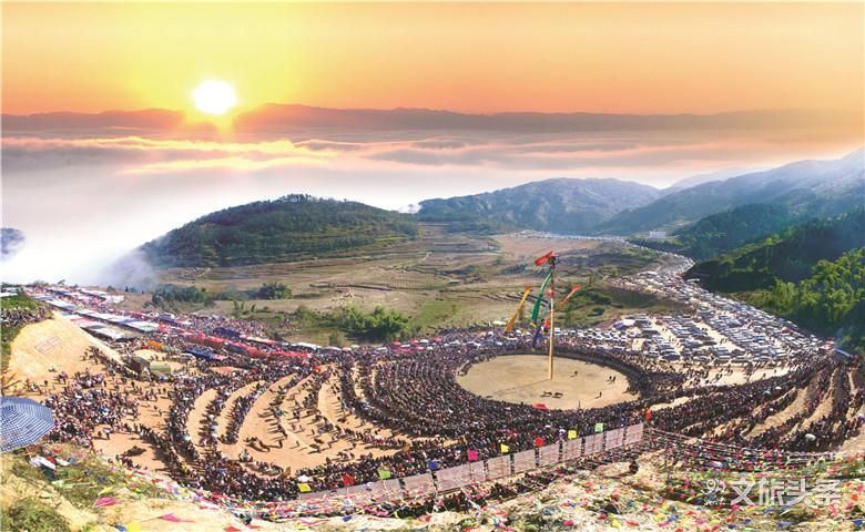 花山场上,斗鸡斗牛,糯米酒香,芦笙悠扬,咪哆咪彩对歌忙。