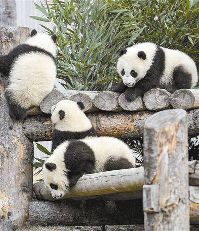 但在成年大熊猫园区,仍有悬挂性丰容装置存在,但绳索已收短。