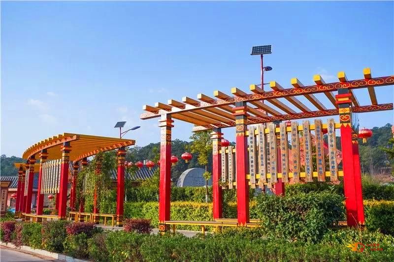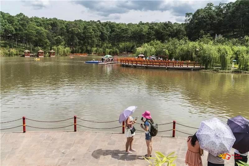 彝村内,青松湖、葫芦海在微风吹拂下波光粼粼,亭台楼阁与湖光山色交相辉映,趣意盎然。环湖长廊曲径通幽,垂柳依依,游客闲庭信步,或拍照、或留影、或赏景、或嬉戏……