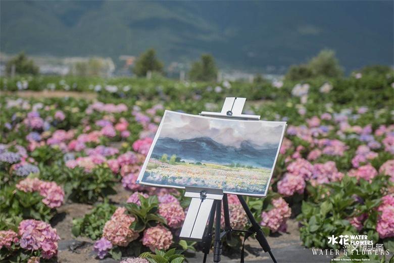 花开正盛的水花庄园,同时也吸引了不少艺术家们的参与,他们手执画笔,将缤纷炫彩的水花及婀娜云彩伴着苍山墨绿一并收入画卷之中,画罢,再噙一口集市摊位上售卖的一杯香茗,艺术与生活间的美妙在暖阳之下升华,将“水花市集”所追求的大理生活文艺范儿表现得淋漓尽致。不少摆摊的业主也自带才艺,在草地间趁着微风翩翩起舞,为市集增添精彩纷呈的表演活动。