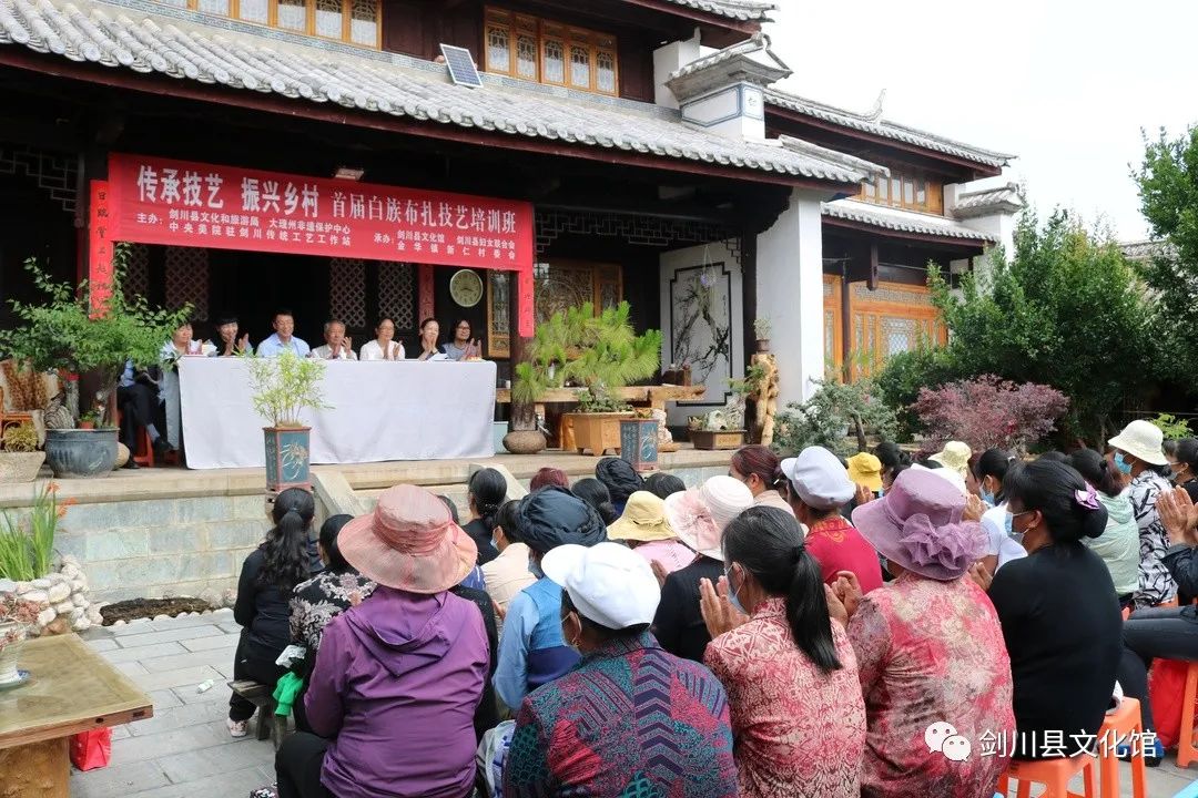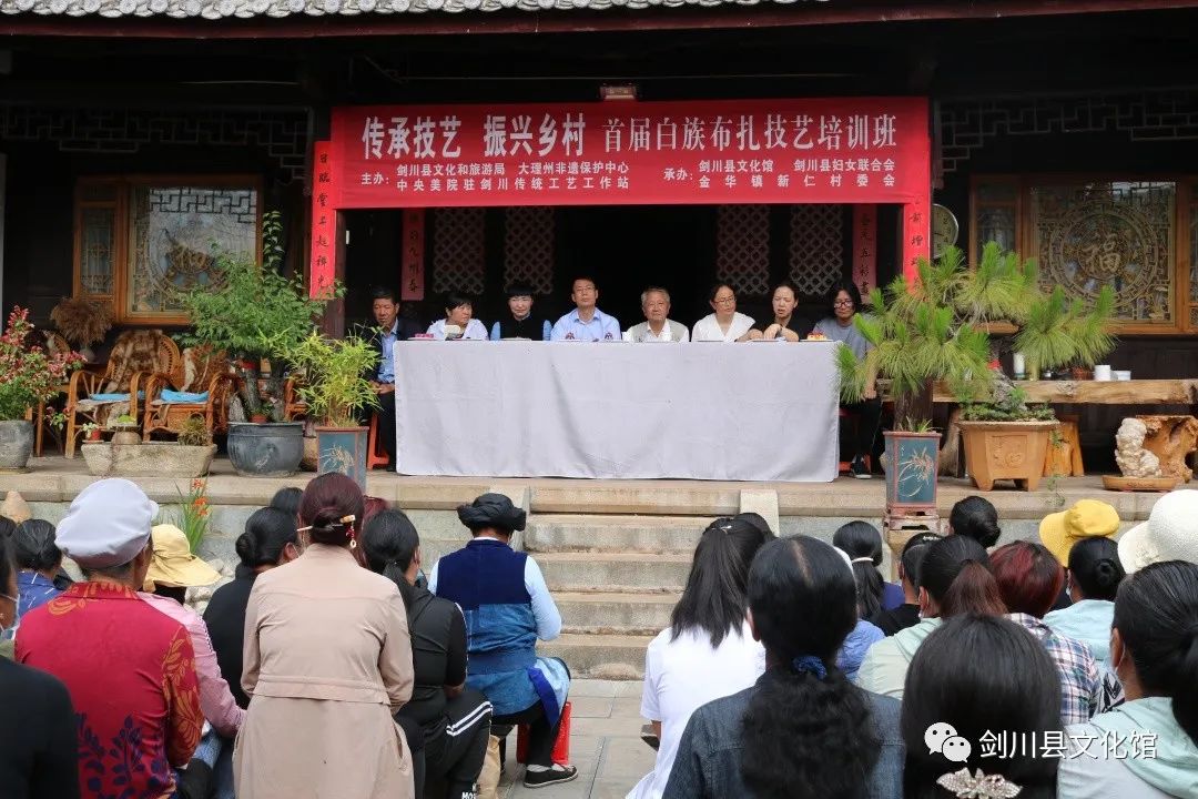 培训班开班仪式邀请了剑川县政府副县长韩文超、剑川县老文化人张笑老师到会指导,剑川县文化和旅游局、中央美院驻剑川传统工艺工作站、剑川县文联、剑川县妇联、新仁村两委、剑川县文化馆等单位参加了开班仪式。