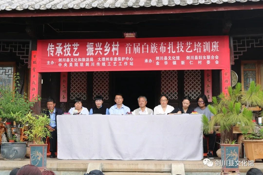 今日在金华镇新仁村委会的主导下,剑川县文化和旅游局、大理州非物质文化遗产保护中心、中央美院驻剑川传统工艺工作站、剑川县文化馆、剑川县文联、剑川县妇联等单位的共同支持下,新仁村白族布扎技艺培训班开班啦!