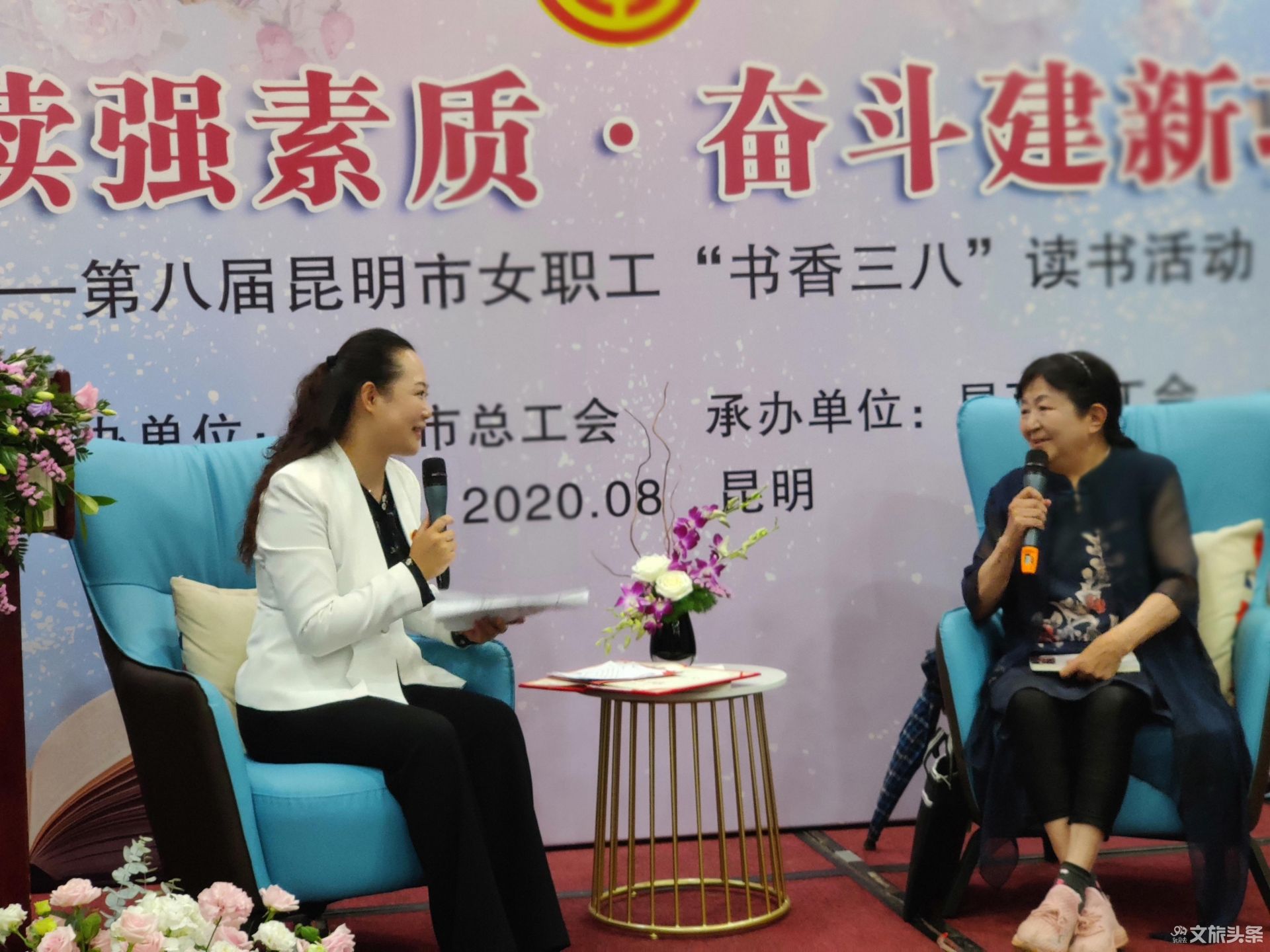 随后,围绕会议主题开启了“文学是一盏照亮心灵的灯”的分享环节。云南省作家协会副主席、昆明市作家协会主席、昆明著名作家、诗人张庆国分享了《百年拓东》的写作心路和经典篇幅。从历史文化的高度来解析作品,让更多的昆明职业女性了解云南作家和云南作品。昆明市作家协会秘书长、昆明作家、昆百大职工张菊芝也带来了精彩的《长湖行》的诗文分享。