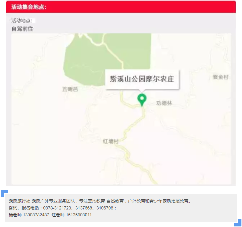 如今的紫溪山景区,可以在户外以团队生活为形式,并能够达到创造性、娱乐性、和教育意义的持续体验。通过领导力培训以及自然环境的熏陶,帮助每一位营员达到生理、心理、社交能力以及心灵方面的成长。