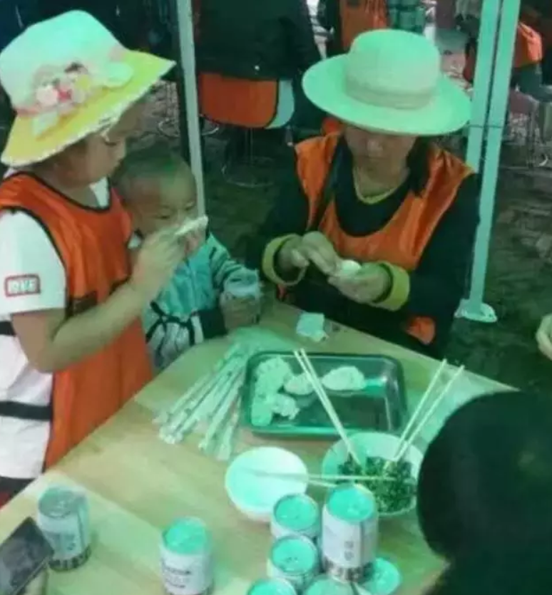 和孩子一起包饺子