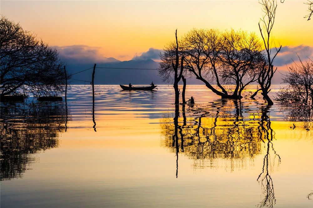 在这里,你可以泛舟洱海尽享朦胧的月色