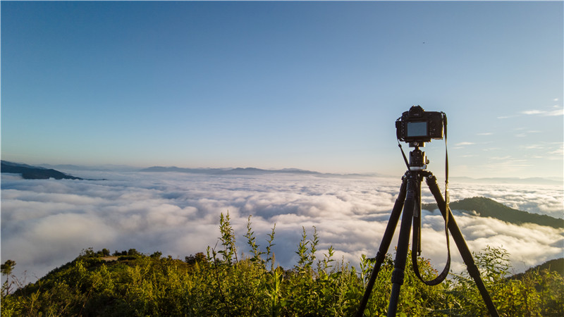 阳光洒在洁白的云海上,让云海的光影更有了层次感,随着太阳越升越高,云海呈现出蓝白的鲜明两色,白色的是云雾,蓝色的是天空,各自透亮,让人观后感觉心思澄明,仿佛接受了一次安静的洗礼。