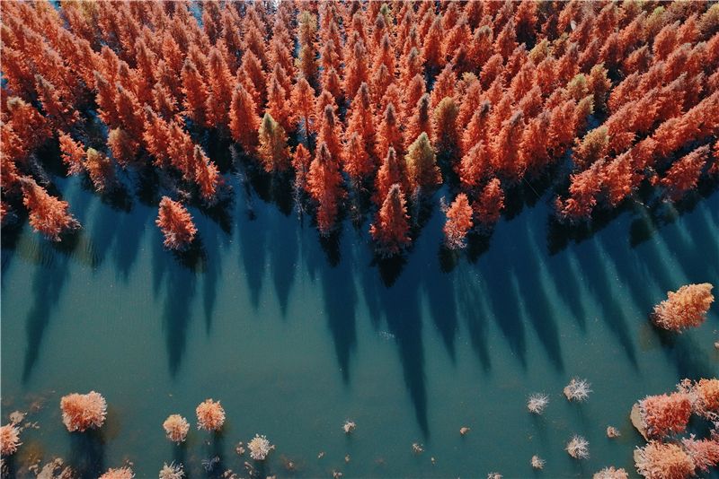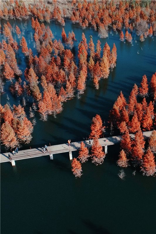 甸尾村红杉林是昆明冬日里独特的暖红,无人机拍摄下的湿地,红水杉与碧水、蓝天交织,色彩斑斓,不可言喻。现在正是红水杉的最佳观赏季,周末跟着小27到甸尾村打卡。