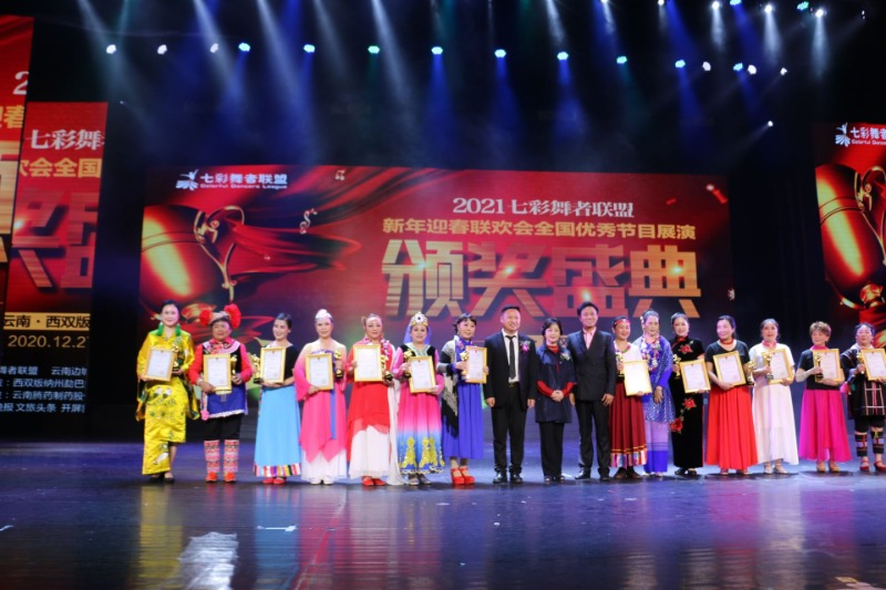 在晚会现场,组委会宣布分别增设了七彩舞者联盟新疆乌鲁木齐分会、七彩舞者联盟新疆昌吉分会、七彩舞者联盟吉林长春分会、七彩舞者联盟云南德宏分会,并进行了授牌仪式。此外,组委会还对七彩舞者联盟艺术指导专家和三位副主席颁发了证书。