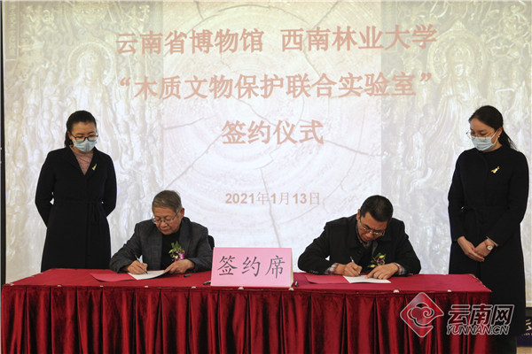 云南网讯(记者 李熙临 实习生 张殊艳)1月13日,云南省博物馆与西南林业大学在云南省博物馆签署了关于共同组建木质文物保护联合实验室的战略合作协议,共同推进木质文物保护和云南省文物保护事业的发展。