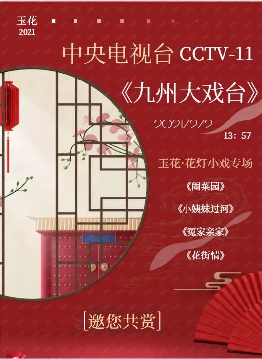 2月2日下午13:57。央视CCTV-11《九州大戏台》重播:玉溪市花灯剧院,花灯小戏专场,再次开唱,邀您共赏!