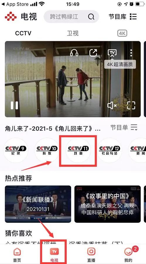 点击下方“电视”