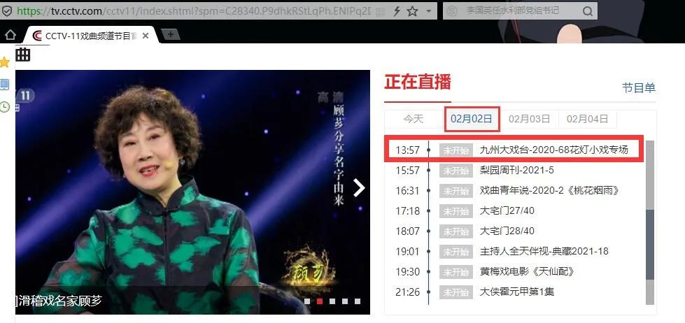 2月2日13:57锁定CCTV-11频道