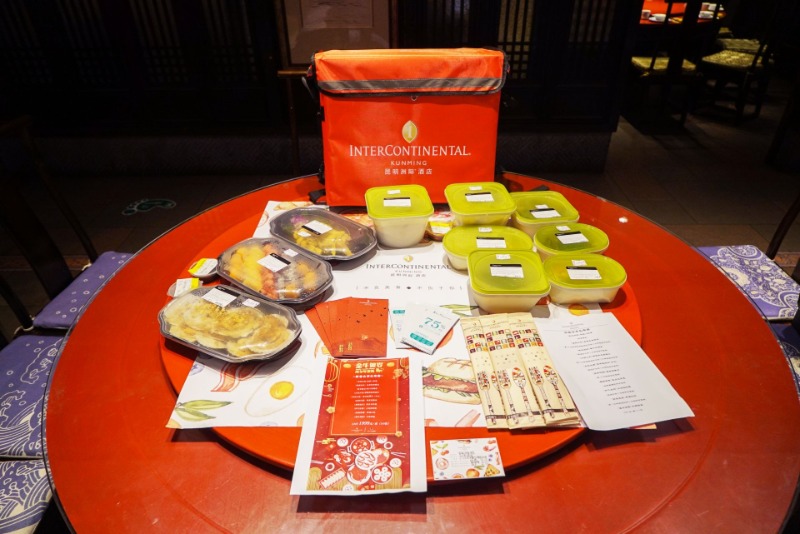 美食搬回家,安心过大年。安心,是所有人在春节期间的真实愿景。因此,无论是酒店餐饮,还是社会餐饮,大多都提供年夜饭线上预订和线下自提、配送等服务。此外,在送餐箱或餐盒上,都会有配送安心卡,上面详细记录了厨师的姓名与体温,以及配送员的姓名与体温,确保消费者可以安心用餐。其中,昆明洲际酒店还专门在送餐箱中,为消费者准备了消毒湿纸巾,并在每个餐盒上贴上了“已消毒”标签;而滇声气则为消费者配备了一次性手套。
