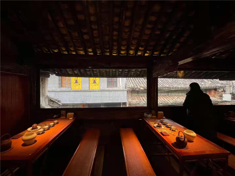 知初茶舍分上下两层,每层有两个包间,分别取名为“巷上”和“隐雾”。“巷上”位于楼上,落座于此,既可品茶,也能一观戴家巷古意盎然的市井街景。“隐雾”藏在院子之中,跻身于此,看茶雾氤氲,听水声汩汩,约上三五好友谈天说地,寻得一方安宁的净土。