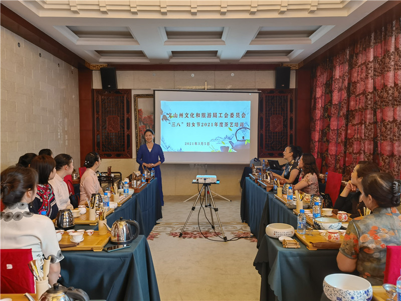 文旅头条讯(融媒体记者 李娇蓉 文)中国传统文化博大精深,源远流长,茶文化是中国传统文化之精华,在“三八”国际妇女节即将到来之际,文山州文化和旅游局机关工会委员会于3月5日下午在诗达酒店开展茶艺培训活动,通过对茶文化的了解,深入挖掘中国传统文化的内涵,感悟人生健康的真谛。活动以茶为媒,让女职工们度过了一个健康、和谐、温馨、难忘的节日。