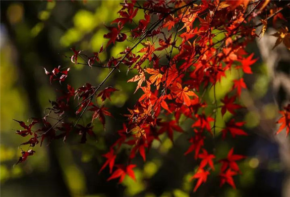 清晨,带着家人或相约好友,一同到紫溪山,呼吸着紫溪山清新的空气,晒着暖阳,寻枫林而去,品读浪漫的气息。远远望去,有一抹淡红”云霞”飘忽山上,远山近坡,枫叶林里一片繁花,深红、猩红、桃红,千叶万树,层次分明,色彩纷呈。枫树优美的身姿,秀丽的叶形,像一把玲珑的扇子,让人忍不住拾起一片片静静赏析。
