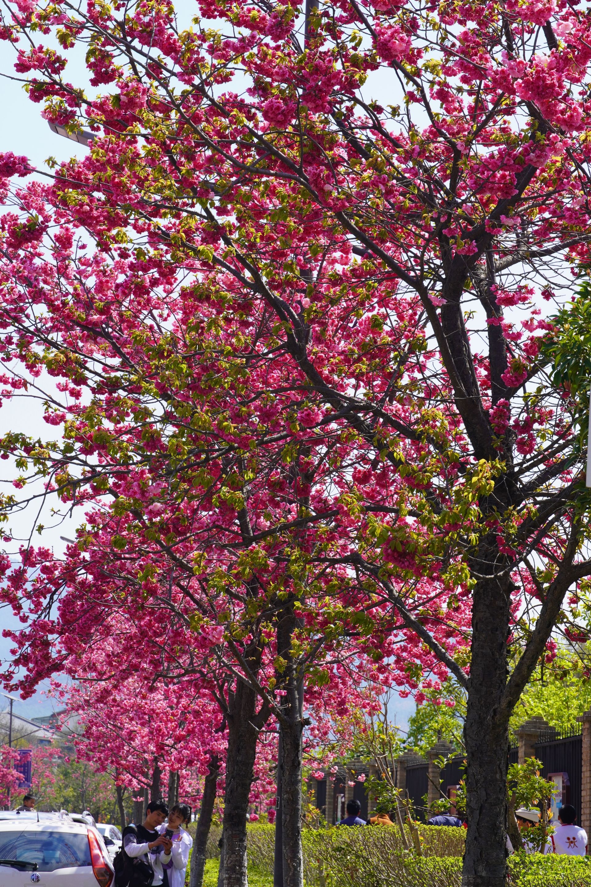 当下走进这里,雪山路仿似一条粉色的丝带,一团团、一簇簇的樱花绽放在枝头,灿若烟霞。在雪山、蓝天的背景陪衬下,白云的点缀下,粉色花瓣更显娇艳迷人,“樱花一开春意然,樱花一舞满倾城”并不是浪得虚名。
