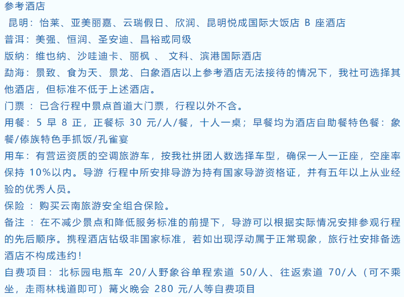 2020年云南主要旅游线路和旅游产品线路成本参考价